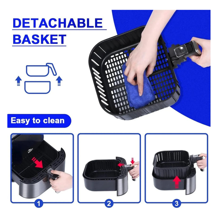 - 🍗 Cocina sin aceite y reduce hasta un 85% las grasas en tus alimentos, cuidando tu salud sin sacrificar el sabor.
