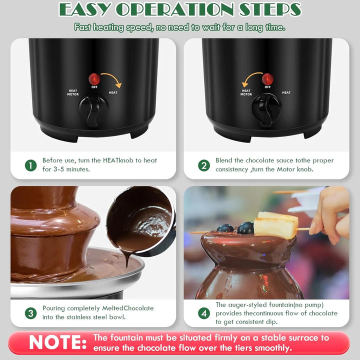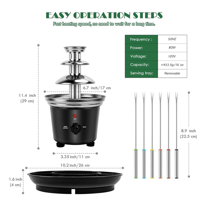 - ✨ Efecto Wow: La cascada de chocolate crea una presentación visual espectacular que fascinará a tus invitados.