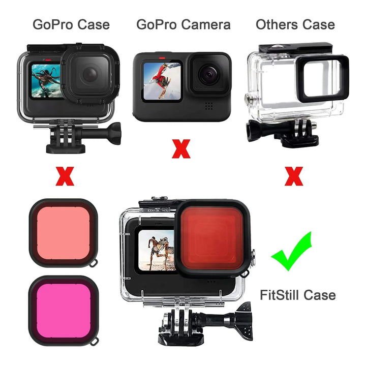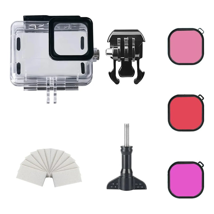 Imagina capturar cada momento bajo el agua con una claridad y color impresionantes, sin preocuparte por dañar tu valiosa Go Pro. Nuestra funda impermeable para Go Pro Hero 12/11/10/9 está diseñada para resistir las condiciones más extremas, permitiéndote explorar el mundo submarino con total confianza. Con materiales de alta calidad y un diseño ergonómico, esta funda no solo protege tu cámara, sino que también mejora tus fotos y videos bajo el agua con sus filtros especializados.