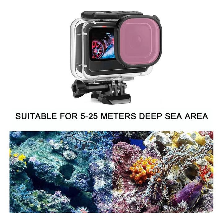 - 🎨 3 filtros de buceo incluidos: Corrige los colores bajo el agua para obtener imágenes vibrantes y naturales, sin importar la profundidad.