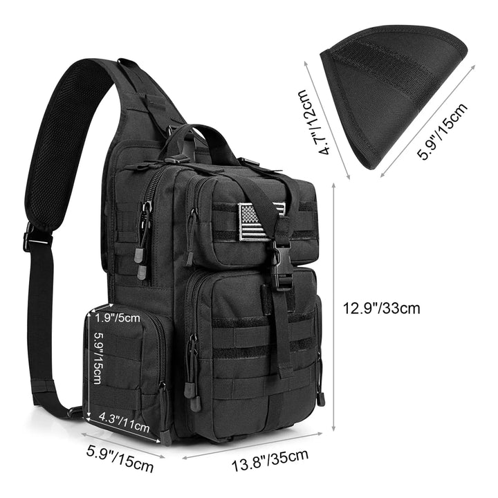 • Múltiples bolsillos: 3 bolsillos delanteros, 2 bolsillos laterales, 1 compartimento principal, 1 compartimento para pistola/compartimento trasero. El compartimento principal y uno de los bolsillos delanteros están diseñados con cremalleras y palo mágico para doble seguridad. Cinturón extraíble que puede ser de hasta 37.8 in. Correa de hombro conmutable puede ser de hasta 42.9 in. Cojín de espalda acolchado muy suave y ventilado para tus actividades diarias.