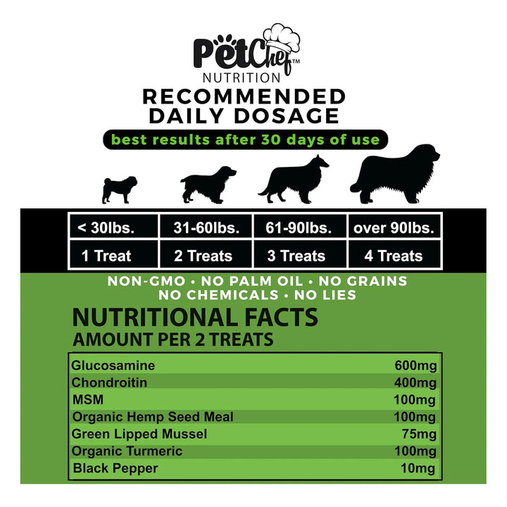 Imagina ver a tu compañero peludo corriendo, saltando y disfrutando como en sus mejores días. Nuestro suplemento está formulado para perros de todas las razas y tamaños, ofreciendo un alivio efectivo contra la artritis, la displasia de cadera y la inflamación. ¡Y lo mejor de todo? A tu perro le encantará el sabor, haciendo que la administración sea tan fácil como darle una golosina.