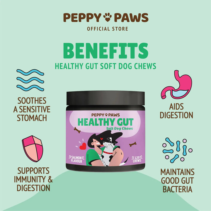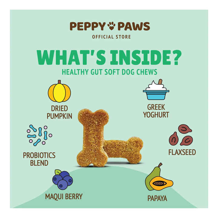 ¿Tu perro sufre de malestar estomacal, digestiones pesadas o falta de energía? Sabemos lo difícil que es ver a tu compañero peludo sin vitalidad. Por eso, hemos creado Healthy Gut Dog 120 Masticables Suaves, una solución 100% natural cargada de probióticos, prebióticos y superalimentos como papaya, yogur griego y baya de maqui. Estos ingredientes trabajan en equipo para equilibrar su flora intestinal, mejorar la absorción de nutrientes y devolverle esa alegría que tanto amas.