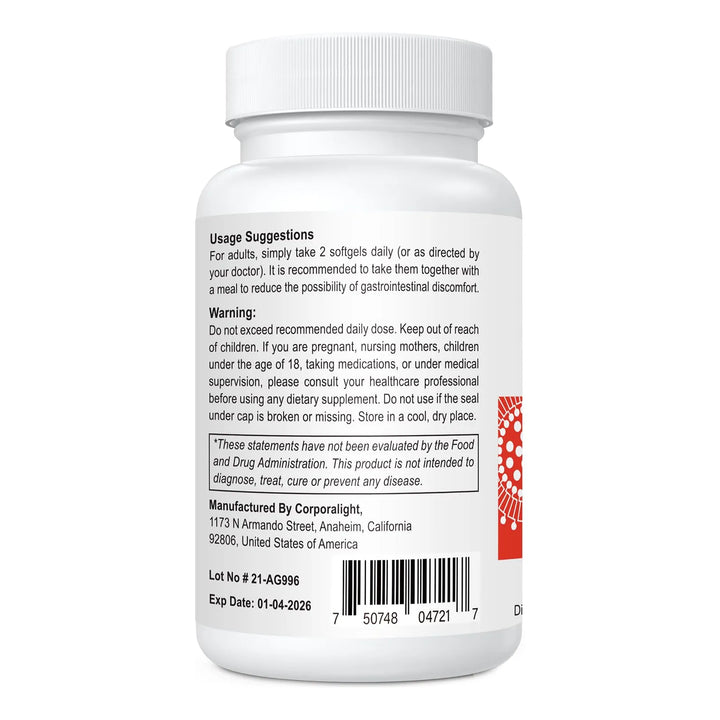 - Toma 1 cápsula blanda al día, preferiblemente con tu comida principal.