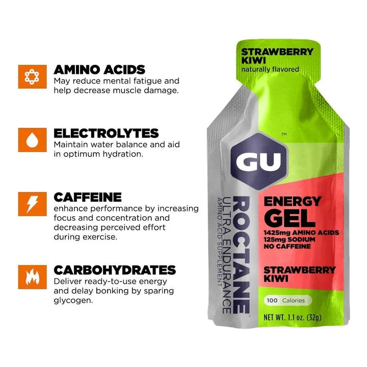 Imagina cruzar la meta con la misma energía con la que empezaste. El gel energético GU Roctane Endurance en sabor Fresa-Kiwi no solo es tu compañero ideal para entrenamientos y competencias, sino que también es la solución científica para mantener tu rendimiento al máximo. Diseñado para atletas que no aceptan límites, este gel te ofrece una combinación única de nutrientes que tu cuerpo absorbe rápidamente, evitando la fatiga y el desgaste muscular.