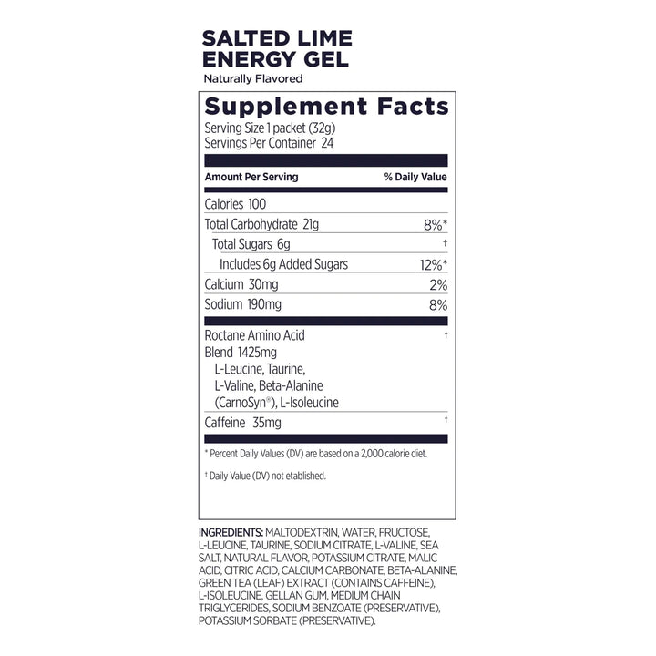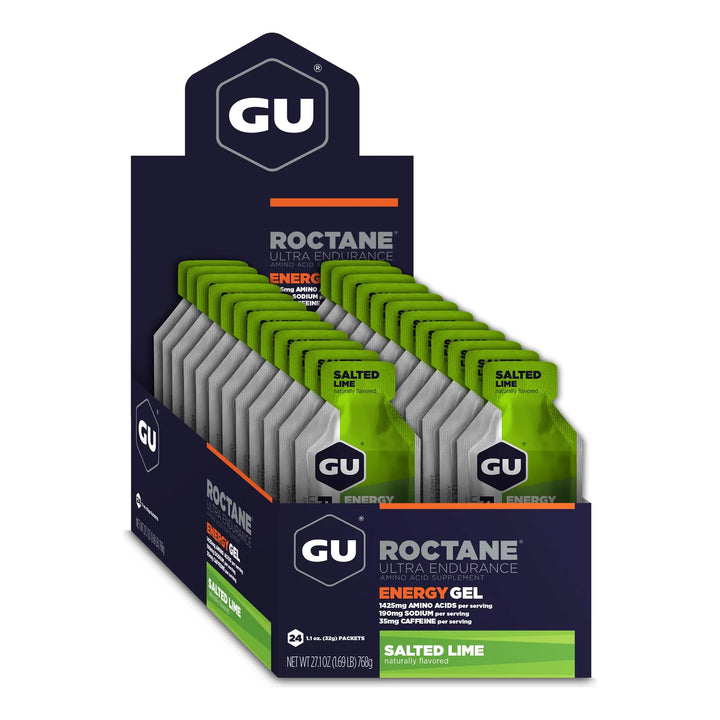 GU Energy Roctane Ultra Endurance Gel energético, vegano, sin gluten, kosher y sin lácteos, nutrición deportiva para correr, ciclismo, senderismo o esquí, lima salada 24 paquetes