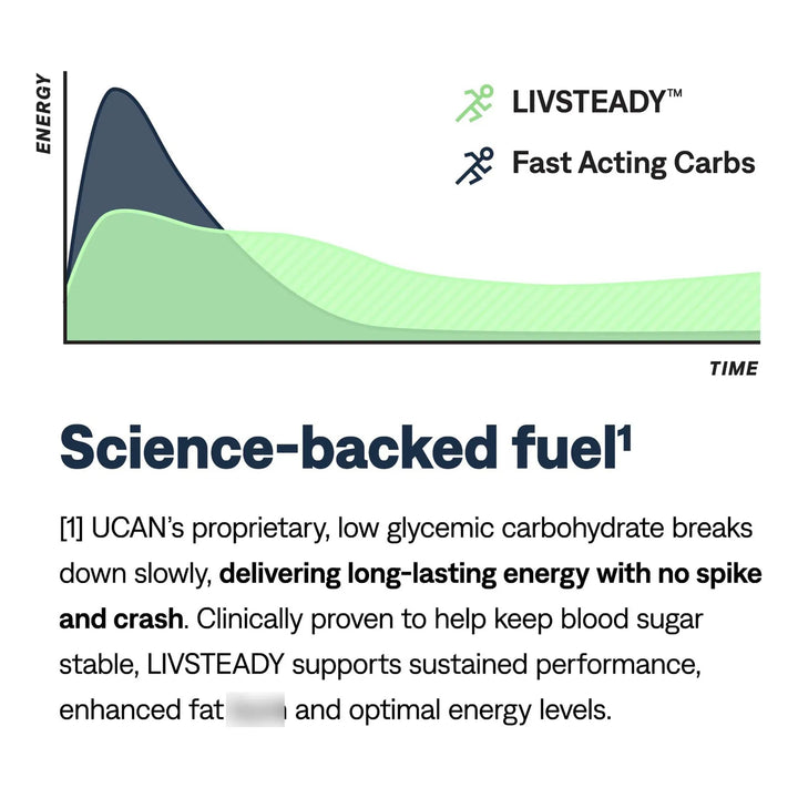 El secreto de UCAN Edge está en su tecnología LIVSTEADY, que libera energía de manera constante en tu torrente sanguíneo. A diferencia de los geles tradicionales que causan picos de azúcar, este producto mantiene tus niveles de glucosa estables, evitando fatiga y permitiéndote rendir al máximo durante más tiempo.