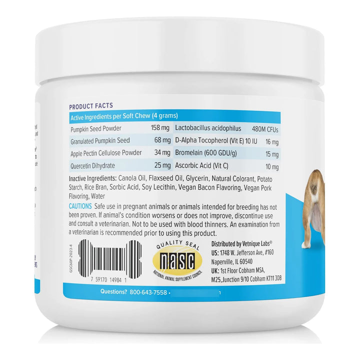 La combinación única de fibra soluble e insoluble en Glandex aumenta el volumen de las heces, lo que promueve la expresión natural de las glándulas anales durante la defecación. Las semillas de calabaza actúan como un antiinflamatorio natural, mientras que los probióticos y enzimas digestivas mejoran la salud intestinal general.