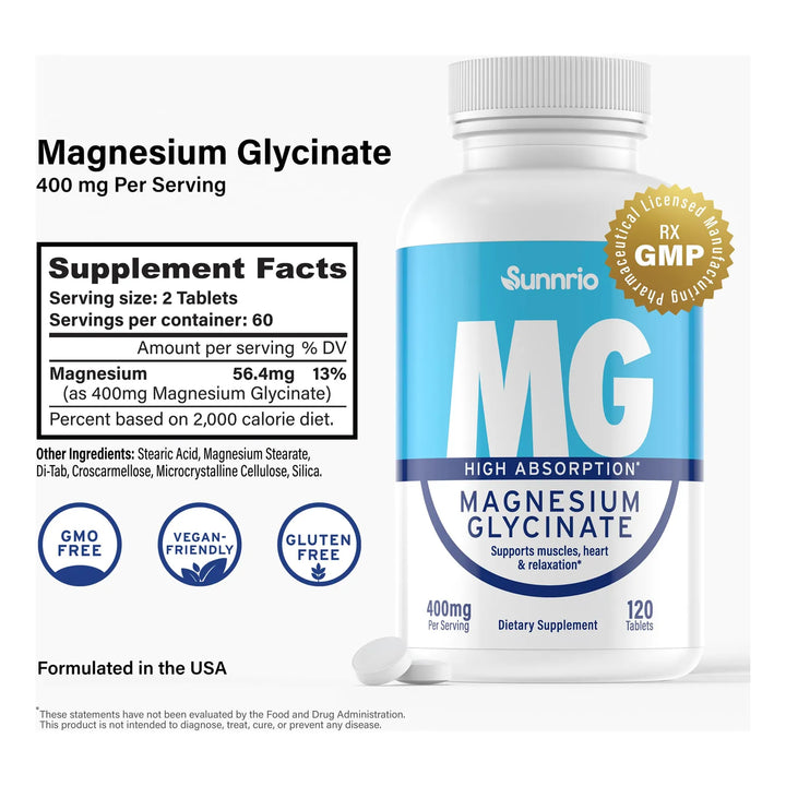 Glicinato de Magnesio 400 mg: Apoyo Muscular y Relajación Óptima
