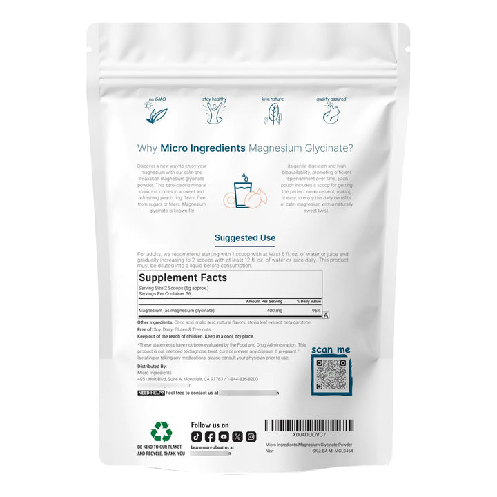 ¿Sientes fatiga constante, calambres musculares o dificultad para relajarte? El magnesio es un mineral esencial que tu cuerpo necesita para funcionar correctamente, y el Glicinato de Magnesio en Polvo es la solución más efectiva y deliciosa para reponerlo. Con un refrescante sabor a melocotón, este suplemento no solo te brinda los beneficios del magnesio, sino que también hace que su consumo sea un placer.