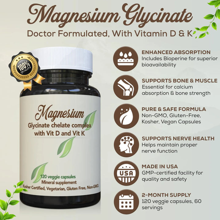Transforma Tu Bienestar Con Glicinato De Magnesio 500 Mg Con Vitamina D Y K