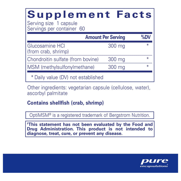 Este poderoso suplemento combina ingredientes clave como glucosamina HCl, sulfato de condroitina y MSM, trabajando juntos para mantener la integridad del cartílago y una actividad enzimática saludable. Sin gluten, sin OMG y libre de ingredientes artificiales, es la opción inteligente para quienes buscan un apoyo articular confiable.