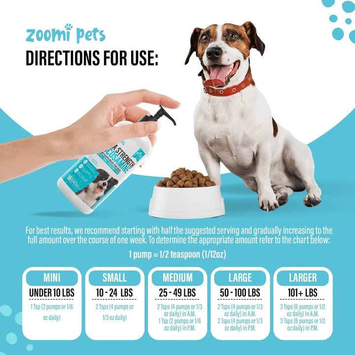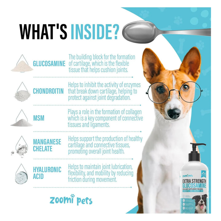 ¿Tu perro ya no corre con la misma energía? ¿Notas que le cuesta levantarse o subir escaleras? La glucosamina líquida para perros de Zoomi Pets es la solución que estabas buscando. Este suplemento revolucionario no solo alivia el dolor articular, sino que también mejora la movilidad y la calidad de vida de tu mejor amigo. Imagina ver a tu compañero peludo jugando como cachorro otra vez, sin molestias ni rigidez. Eso es exactamente lo que lograrás con este potente suplemento formulado por expertos.