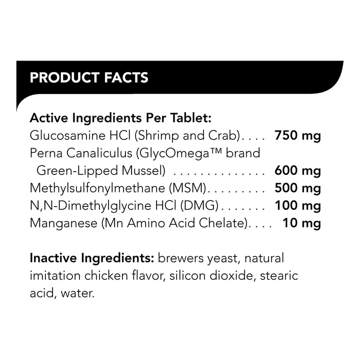 Glyco Flex 2 no es solo otro suplemento más. Su fórmula avanzada incluye ingredientes de alta calidad como el mejillón de labios verdes (Perna canaliculus), glucosamina, MSM y DMG, componentes clínicamente probados para promover la salud articular. Cada tableta masticable tiene un delicioso sabor a pollo asado que tu perro adorará, haciendo que la administración sea sencilla y libre de estrés.