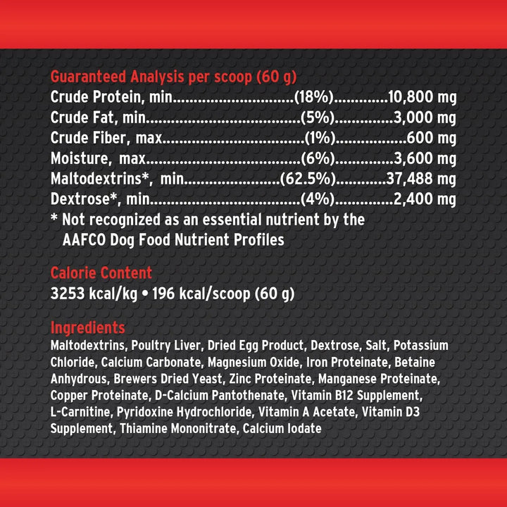 - 🚀 Recuperación Express: Repone el 88% del glucógeno muscular en solo 4 horas, para que tu perro vuelva a la acción más rápido que nunca.
