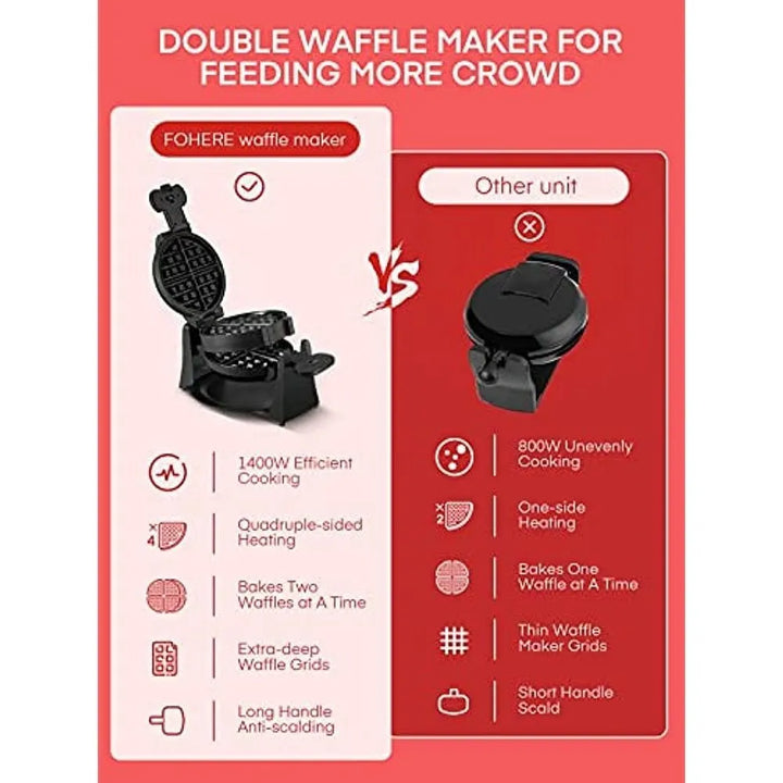 - 🔄 Cocina dos waffles simultáneamente: Perfecto para familias o reuniones, sin esperas ni comprometer la calidad.