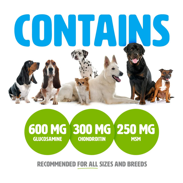 - Alivio del dolor natural 🐶: La combinación de glucosamina, condroitina y MSM actúa directamente en las articulaciones, reduciendo la inflamación y el malestar.