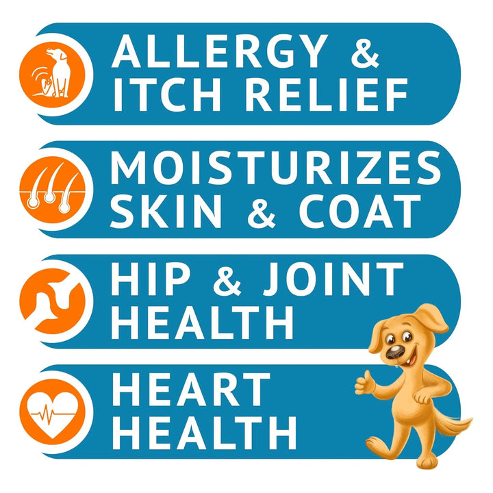 ¿Tu perro sufre de picazón constante, piel seca o alergias que no lo dejan en paz? Imagina poder aliviar su malestar con un simple masticable delicioso que no solo lo hará feliz, sino que mejorará su salud desde adentro. Las Golosinas Omega 3 para Perros son la solución que estabas buscando, formuladas con aceite de pescado de Alaska para brindar un alivio rápido y duradero.