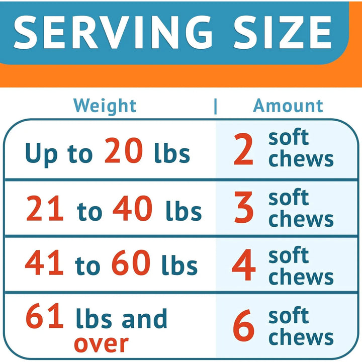 - Administra 2 golosinas al día para perros medianos/grandes (1 para razas pequeñas).