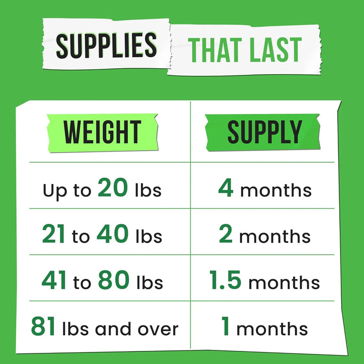 - 🦴 Dosis precisa por peso: Fácil administración según su tamaño, desde perritos mini hasta gigantes amorosos.