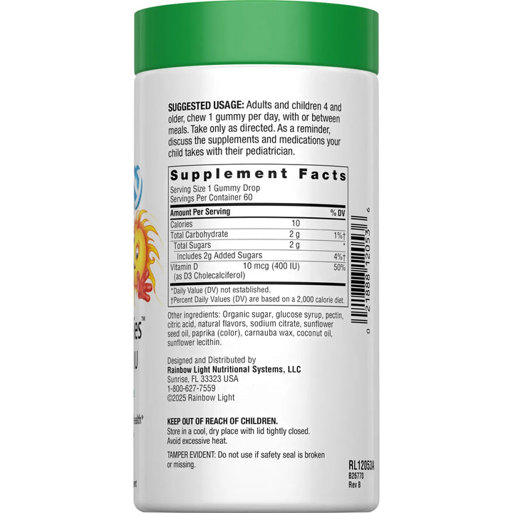 ¿Buscas una forma deliciosa y natural de fortalecer tu sistema inmunológico y la salud de tus huesos? Las Gominolas Arco Iris Vitamina D 400 Ui son la solución perfecta para ti y tu familia. Con un sabor natural a mandarina y solo 1 gramo de azúcar orgánica por gominola, estas vitaminas son tan nutritivas como irresistibles.