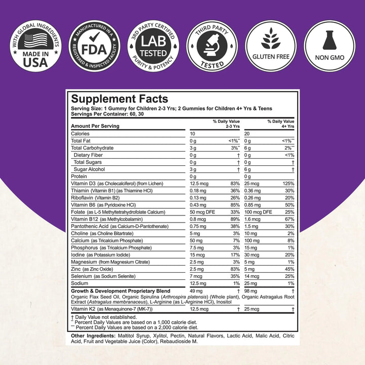 Los niños las adoran y los padres confían en sus ingredientes premium. Formuladas con calcio, vitaminas D3 de liquen y K2 para una óptima absorción, estas gomitas son mucho más que un simple suplemento. Son el apoyo que todo niño necesita durante sus años de crecimiento, ayudando a desarrollar huesos y dientes fuertes mientras contribuyen a su bienestar general.