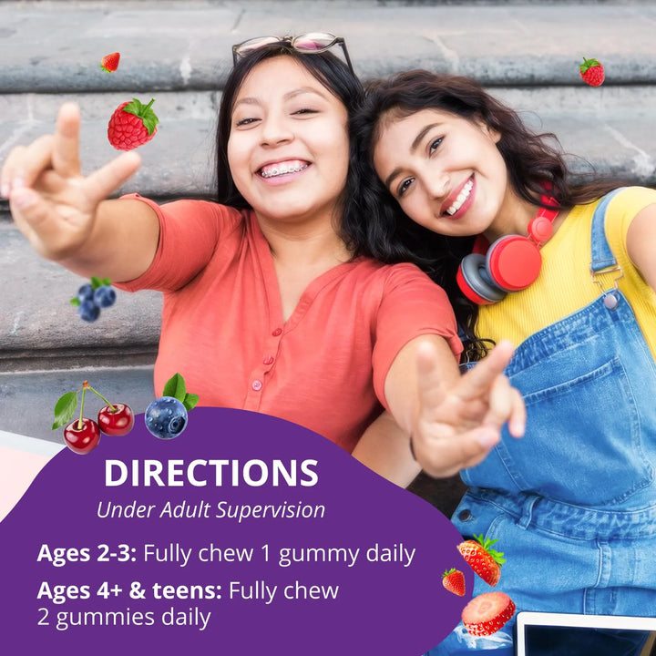 - Para niños de 4 años en adelante: 2 gomitas diarias