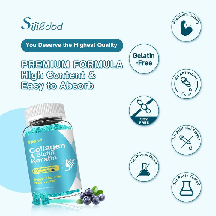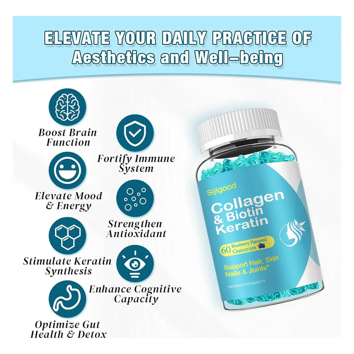 ¿Sueñas con un cabello más fuerte, una piel radiante y uñas que no se rompen al primer golpe? Las Gomitas de Biotina 15000 Mcg con Colágeno, Queratina y Ácido Hialurónico son tu solución. Este delicioso suplemento en forma de gomita no solo es fácil de tomar, sino que está diseñado para nutrir tu cuerpo con los ingredientes esenciales que necesita para lucir y sentirse increíble.