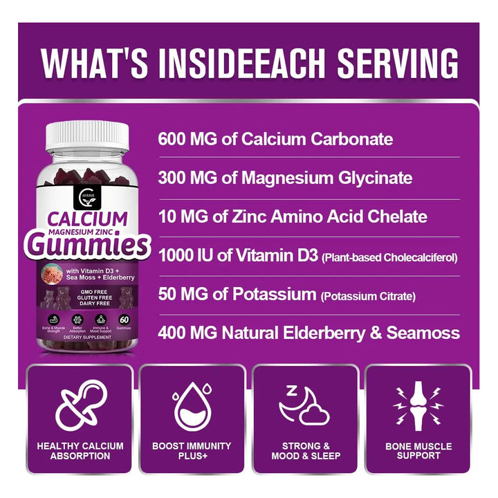La proporción dorada 2:1 de calcio y magnesio en estas gomitas asegura que tus huesos reciban el equilibrio perfecto para una calcificación más fuerte y saludable. No más preocupaciones por desequilibrios que puedan afectar tu bienestar. Con ingredientes de alta calidad como glicinato de magnesio, potasio de zinc D3 y musgo marino orgánico, la absorción de nutrientes es casi del 96%, lo que significa que tu cuerpo aprovecha al máximo cada porción. ¡Es la combinación perfecta de sabor y salud!
