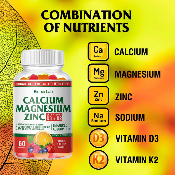 Gomitas de Calcio, Magnesio y Zinc con Vitaminas D3 y K2: Nutrición Deliciosa y Potente