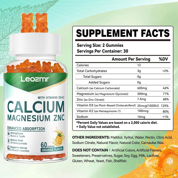 Gomitas De Calcio Magnesio Zinc Vitamina D3 K2 Alta Potencia