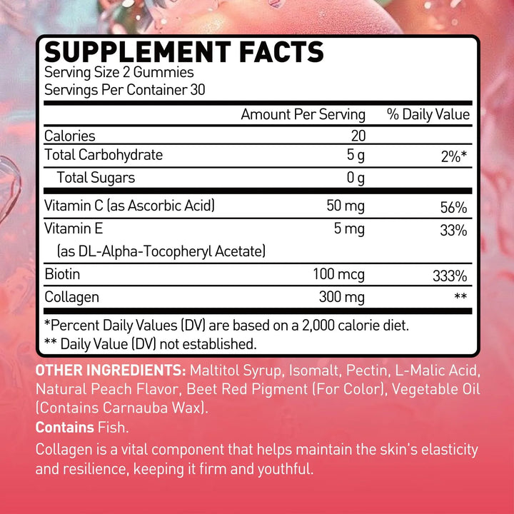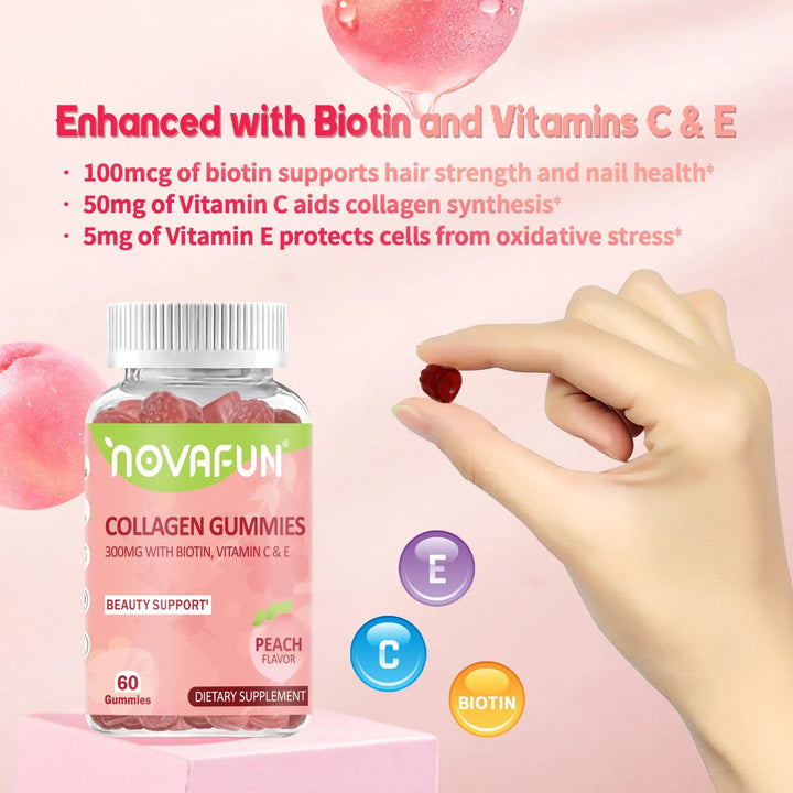 ¿Sueñas con una piel radiante, un cabello fuerte y uñas resistentes? Las gomitas de colágeno con biotina, vitamina C y E son tu solución. Cada mordisco es un paso hacia la belleza que siempre has deseado. Olvídate de las píldoras difíciles de tragar y disfruta de un delicioso sabor a melocotón mientras cuidas de ti misma.