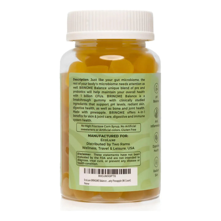 ¿Sueñas con una piel radiante, una digestión equilibrada y un sistema inmunológico fuerte? Las gomitas de colágeno probióticas BRINGME Balance son la solución todo en uno que estabas esperando. Con un delicioso sabor a piña y formuladas con ingredientes naturales, estas gomitas no solo son un placer para tu paladar, sino también un aliado para tu bienestar.