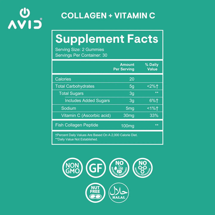 Fórmula Potente: 100 mg de péptidos de colágeno + 30 mg de vitamina C por gomita. 💪