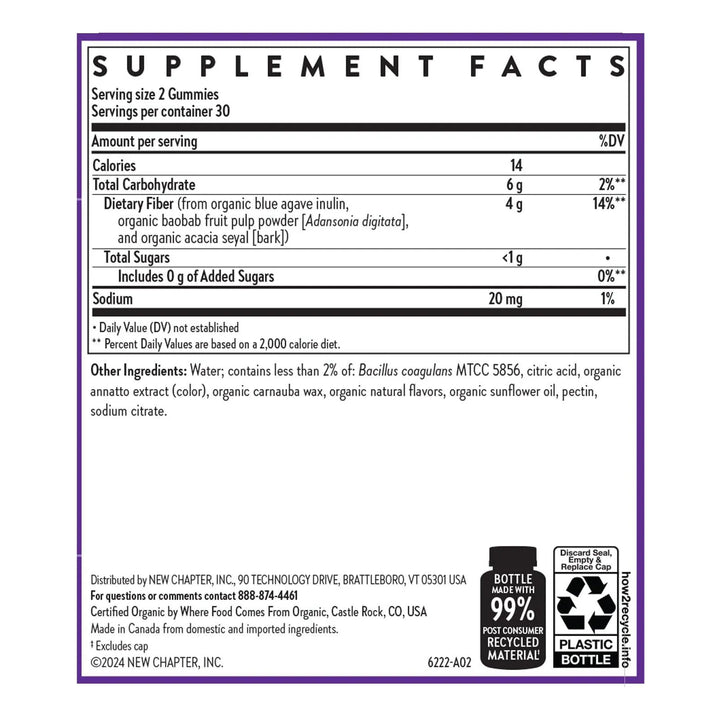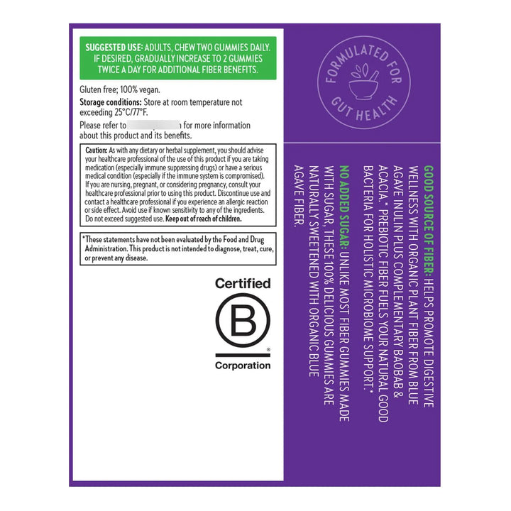 Imagina poder cuidar de tu salud intestinal sin sacrificar el sabor o tu estilo de vida. Con solo 2 gomitas al día, obtienes 0.14 oz de fibra prebiótica de origen vegetal, perfecta para comenzar tu viaje hacia una digestión más saludable. Y si lo deseas, puedes aumentar a 4 gomitas para un beneficio aún mayor. Lo mejor de todo es que están endulzadas naturalmente con inulina de agave azul, sin azúcares añadidos, y son 100% veganas.