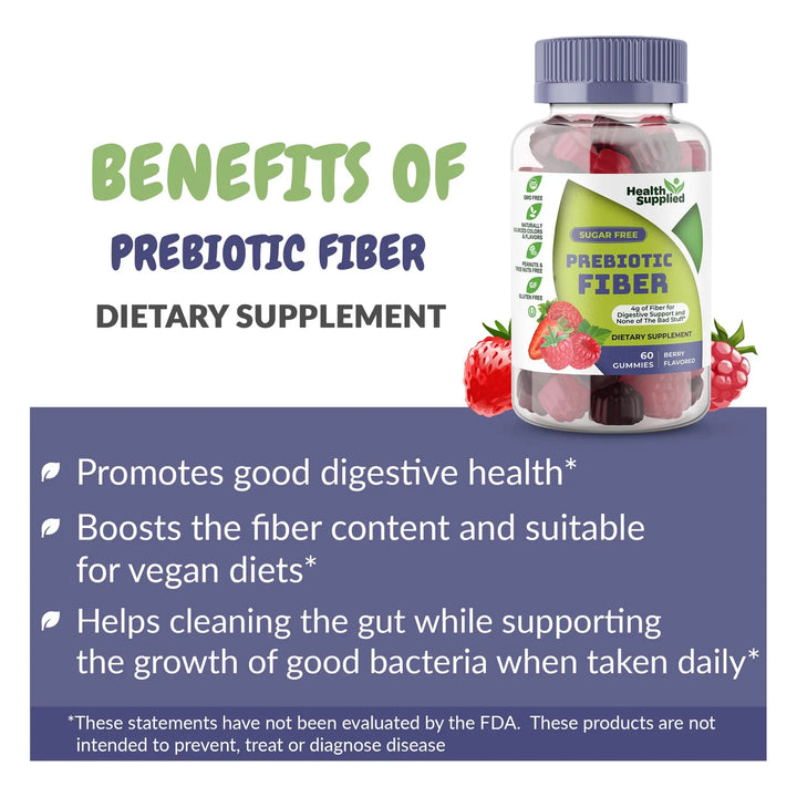 Las gomitas de fibra prebiótica actúan como un limpiador interno suave pero efectivo. La fibra prebiótica alimenta las bacterias beneficiosas en tu intestino, promoviendo un equilibrio saludable en tu microbioma. Esto no solo mejora tu digestión, sino que también fortalece tu sistema inmunológico y ayuda a regular tu tránsito intestinal.