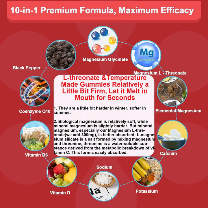 Fórmula 10 en 1: Más que magnesio, un cóctel de nutrientes esenciales para tu bienestar. 🌈