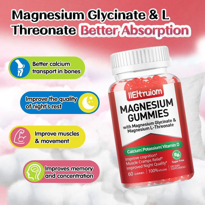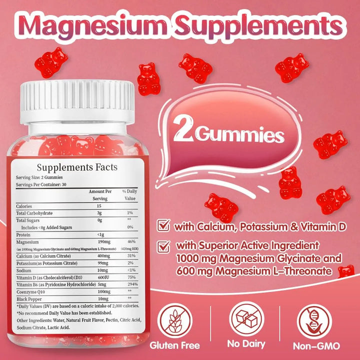 Imagina despertar cada mañana con la energía necesaria para afrontar tu día, sin esa molesta tensión muscular que te acompaña desde hace meses. Nuestras gomitas combinan glicinato de magnesio (500 mg) y L-treonato (300 mg) en una fórmula científicamente desarrollada para máxima absorción. No es casualidad que nutricionistas recomienden estos compuestos: trabajan directamente en tus células para mejorar tu rendimiento físico y cognitivo.