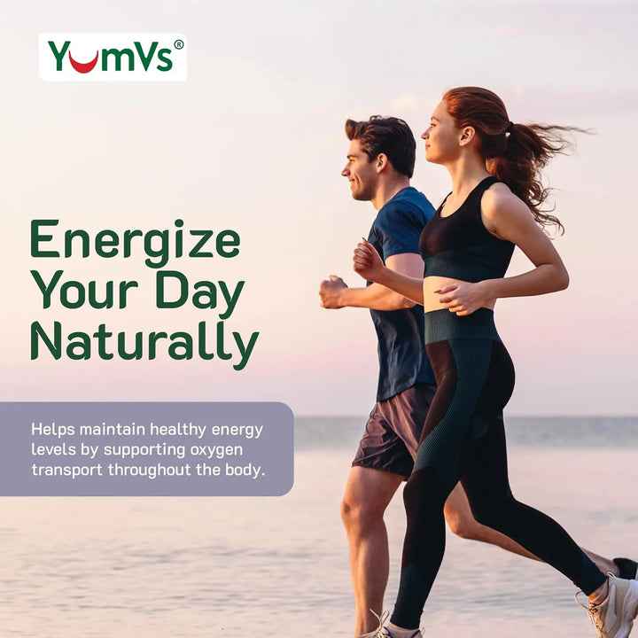 El hierro es esencial para la producción de hemoglobina, que transporta oxígeno a todo tu cuerpo. Combinado con vitamina C, se maximiza su absorción, potenciando tus niveles de energía y reduciendo la fatiga. La vitamina B12 y el ácido fólico adicionales apoyan la función nerviosa y la producción celular, creando un efecto sinérgico para tu bienestar general.