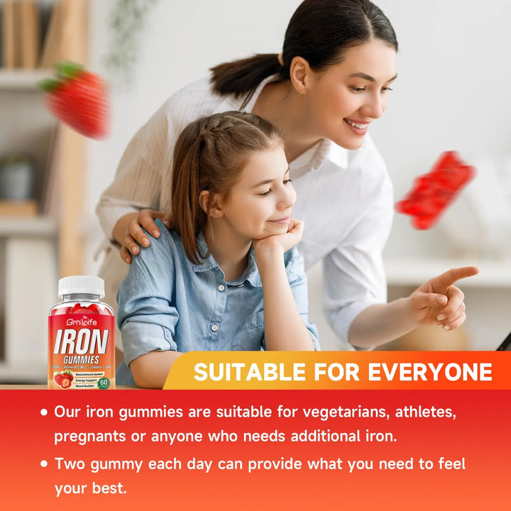 Imagina despertar cada mañana con la energía necesaria para enfrentar tu día sin fatiga. Nuestras gomitas están diseñadas para aumentar tus niveles de hierro, apoyar la formación de glóbulos rojos y fortalecer tu sistema inmunológico. Con un delicioso sabor a fresa, son perfectas para toda la familia, incluyendo niños, mujeres embarazadas y adultos que buscan un suplemento fácil de tomar y altamente efectivo.
