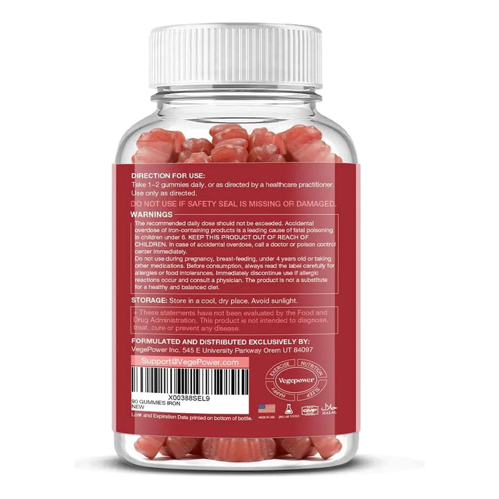 ¿Eres vegano, vegetariano o donas sangre frecuentemente? Estas gomitas son perfectas para ti. Elaboradas con ingredientes 100% naturales, sin OMG, gluten, soja o conservantes artificiales, son una opción segura y deliciosa para mantener tus niveles de hierro equilibrados. Además, al ser producidas en instalaciones certificadas por GMP en EE.UU., garantizamos la más alta calidad en cada frasco.