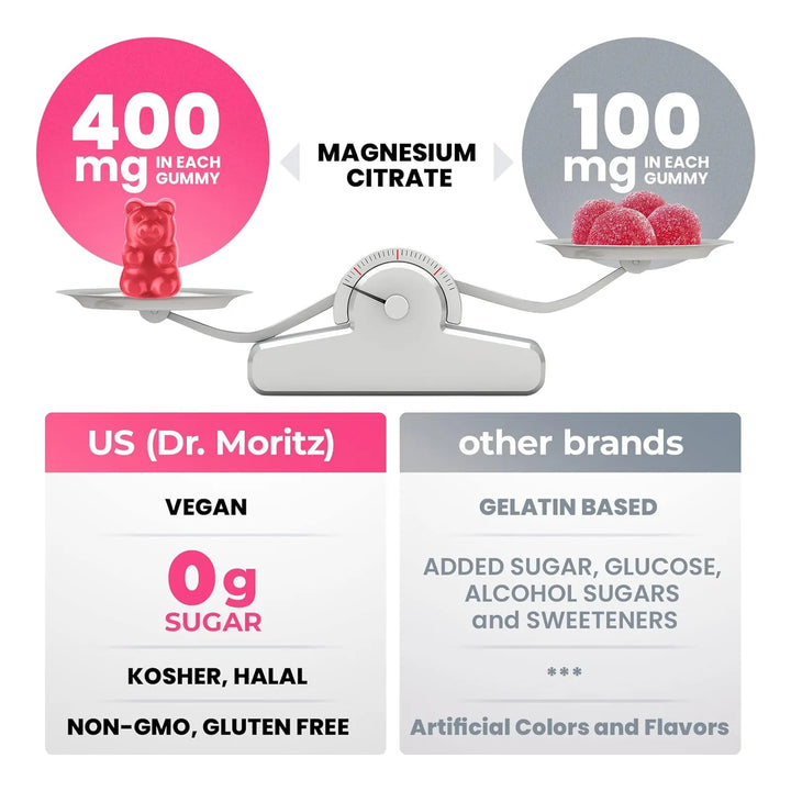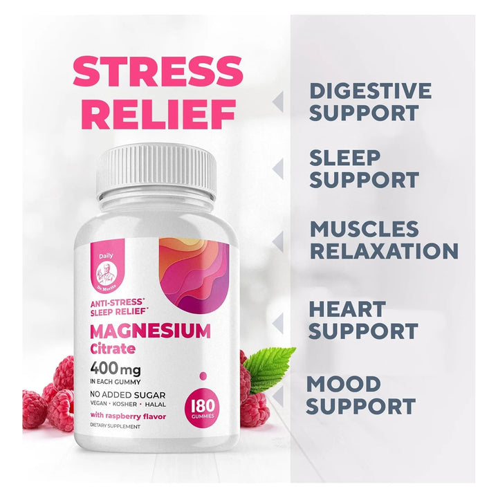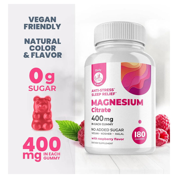 ¿Te cuesta relajarte después de un largo día? ¿Buscas un suplemento delicioso que apoye tu bienestar sin exceso de azúcar? Las Gomitas de Magnesio Dr. Moritz son la solución perfecta para ti. Con un delicioso sabor a frambuesa y solo 400 mg de citrato de magnesio por gomita, este producto está diseñado para ayudarte a relajarte, mejorar tu sueño y apoyar tu salud ósea, cardíaca y muscular de manera natural.