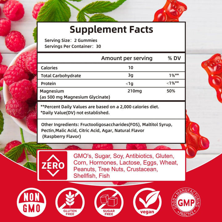 - 500 mg de magnesio glicinato por gomita 💪: La dosis perfecta para apoyar tu bienestar diario.