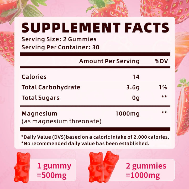 Gomitas De Magnesio L-Treonato 500 Mg Sabor Fresa 120 Unidades
