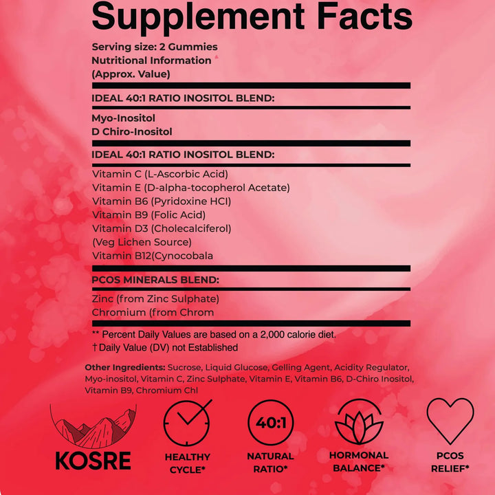 Las gomitas de mio-inositol y D-chiro inositol trabajan en sinergia con tu cuerpo para restaurar el equilibrio hormonal y mejorar la sensibilidad a la insulina, clave para quienes buscan manejar condiciones como el SOP. La vitamina D3 y el folato apoyan la salud reproductiva y el bienestar general, mientras que los minerales como el zinc y el cromo optimizan tu metabolismo.