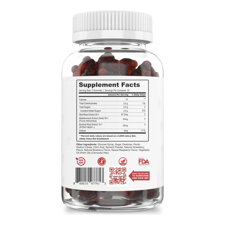 El musgo marino irlandés es conocido por su alta concentración de minerales y nutrientes que apoyan múltiples funciones corporales. Al consumir estas gomitas diariamente, los compuestos activos trabajan para: