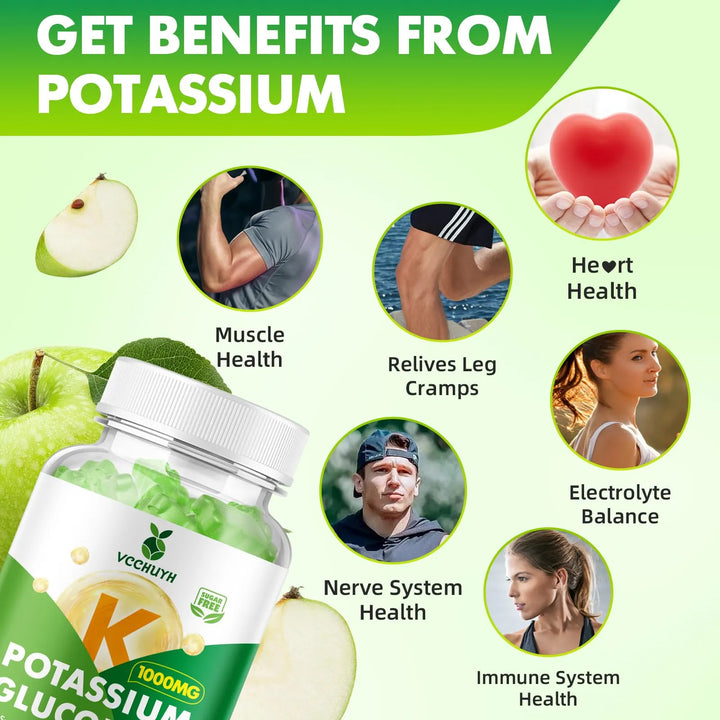 ¿Sufres de calambres musculares frecuentes, fatiga inexplicable o desequilibrios electrolíticos? Las gomitas de potasio de 1000 mg son la solución que tu cuerpo necesita. Formuladas con gluconato de potasio de alta calidad, estas gomitas no solo son deliciosas, sino que también te brindan el apoyo diario que necesitas para mantenerte activo y saludable. Imagina despertar sin esos molestos calambres nocturnos o tener la energía necesaria para enfrentar tu día sin fatiga. Esto es lo que nuestras gomitas pueden hacer por ti.