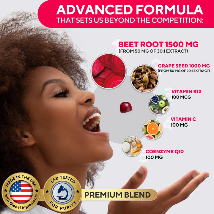 Fórmula Suprema: Combina extracto de remolacha, semilla de uva, CoQ10 y vitaminas esenciales en cada gomita. 🌟