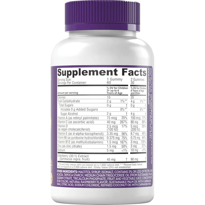 Las Gomitas de Saúco para Niños están diseñadas para actuar como un refuerzo inmunológico diario. El saúco, conocido por sus propiedades antioxidantes, se combina con vitaminas y minerales clave para apoyar las defensas naturales del cuerpo. La vitamina C y el zinc trabajan juntos para fortalecer el sistema inmunológico, mientras que las otras vitaminas aseguran un desarrollo saludable.