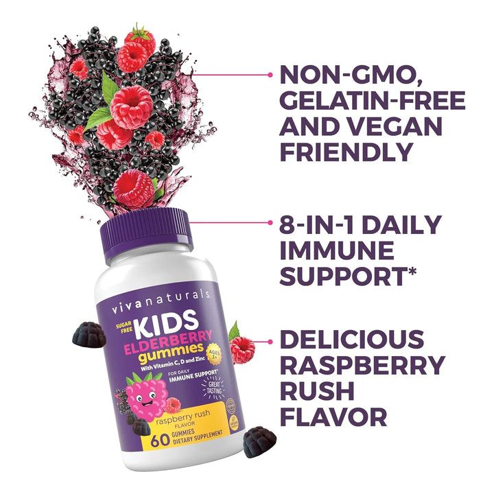 Imagina poder fortalecer el sistema inmunológico de tus hijos mientras disfrutan de un dulce delicioso. Con las Gomitas de Saúco para Niños de Viva Naturals, eso es exactamente lo que obtienes. Cada gomita está repleta de ingredientes cuidadosamente seleccionados para apoyar la salud de tus pequeños, sin azúcar añadida y con un sabor a frambuesa que les encantará.